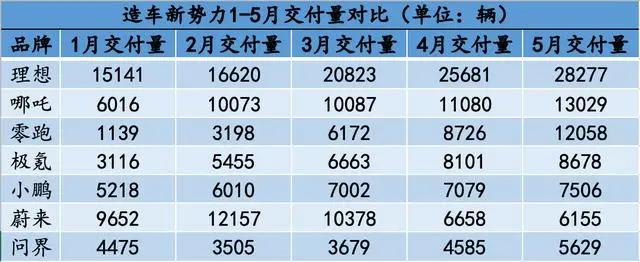 总从体格局来看,销冠理想5月交付量再创新高达2.83万辆,刷新了造车新势力的销量天花板;蔚来、小鹏销量继续低迷,月交付仍在几千徘徊均未破万;零跑汽车实现价格跃迁,C系列交付破万,从低端市场向主流市场破圈成功。